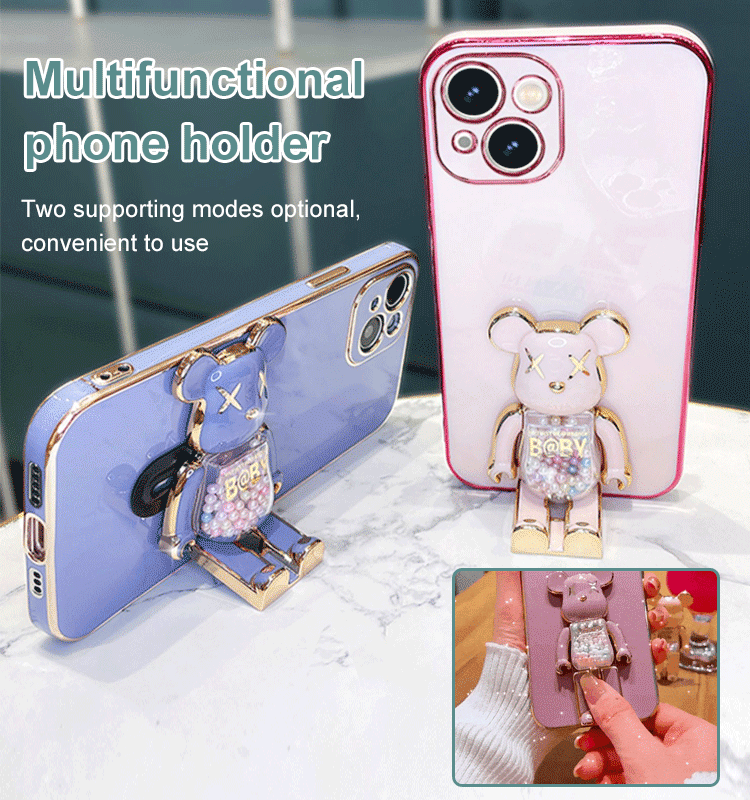 Electroplating candy bear mobile phone case with bracket